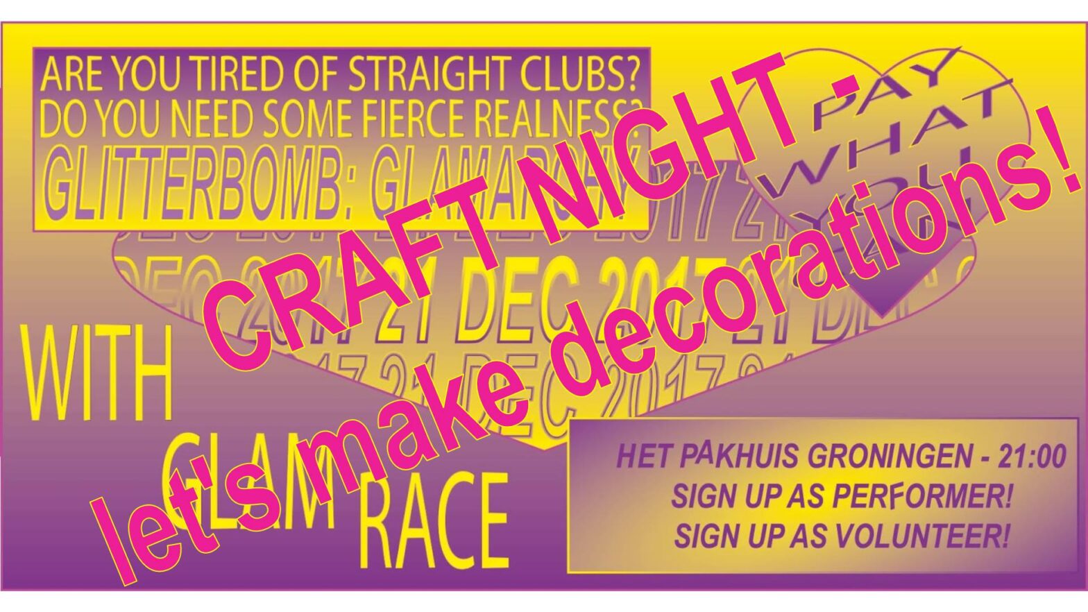 The Glitterbomb: Glamarchy #1 party is happening on Thursday and before it happens, we need to make all the slogan posters, decorations and trophies so that it is a shimmering, glittering feast for the eyes – we will be providing the materials – so just bring your lovely self ![]()